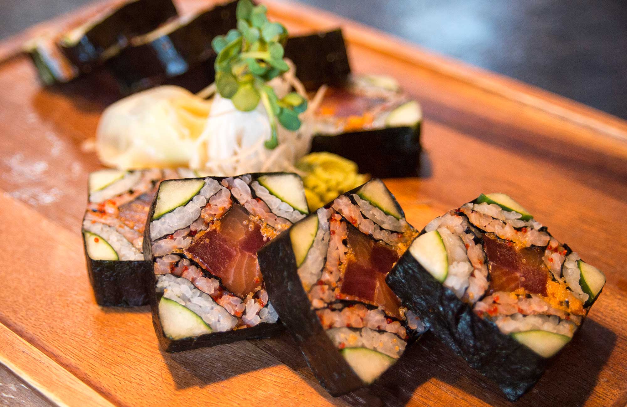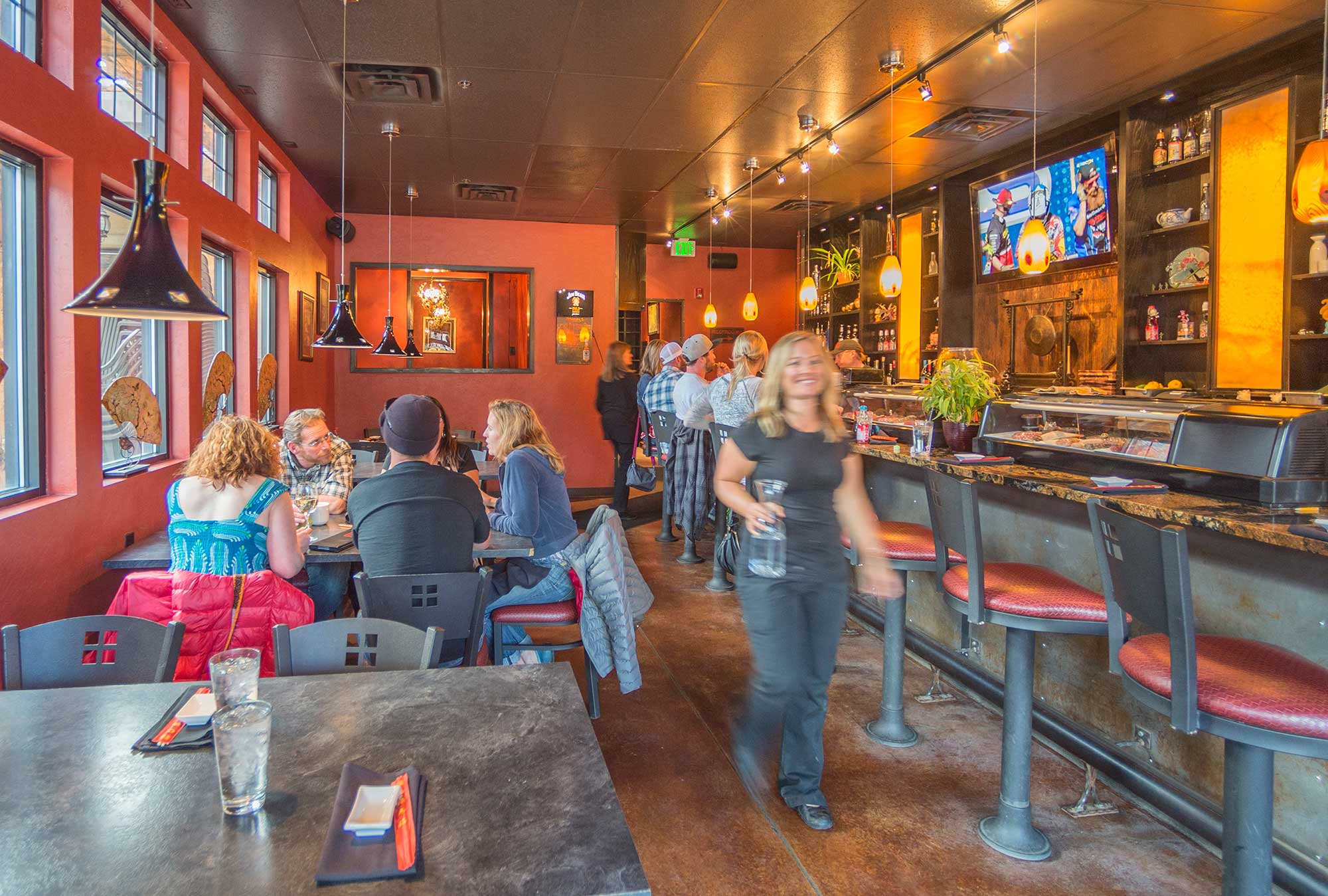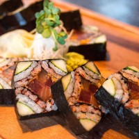 Photo Gallery Mr Roboto Roll Sumiso Spicy Tuna Tower Dynamite Mussels Dancing Eel Roll All American Roll Sushi Case Window Pane Roll Enjoying some Miso soup! Kemosabe Restaurant The exterior to Kemosabe / Silverheels Our sushi chefs